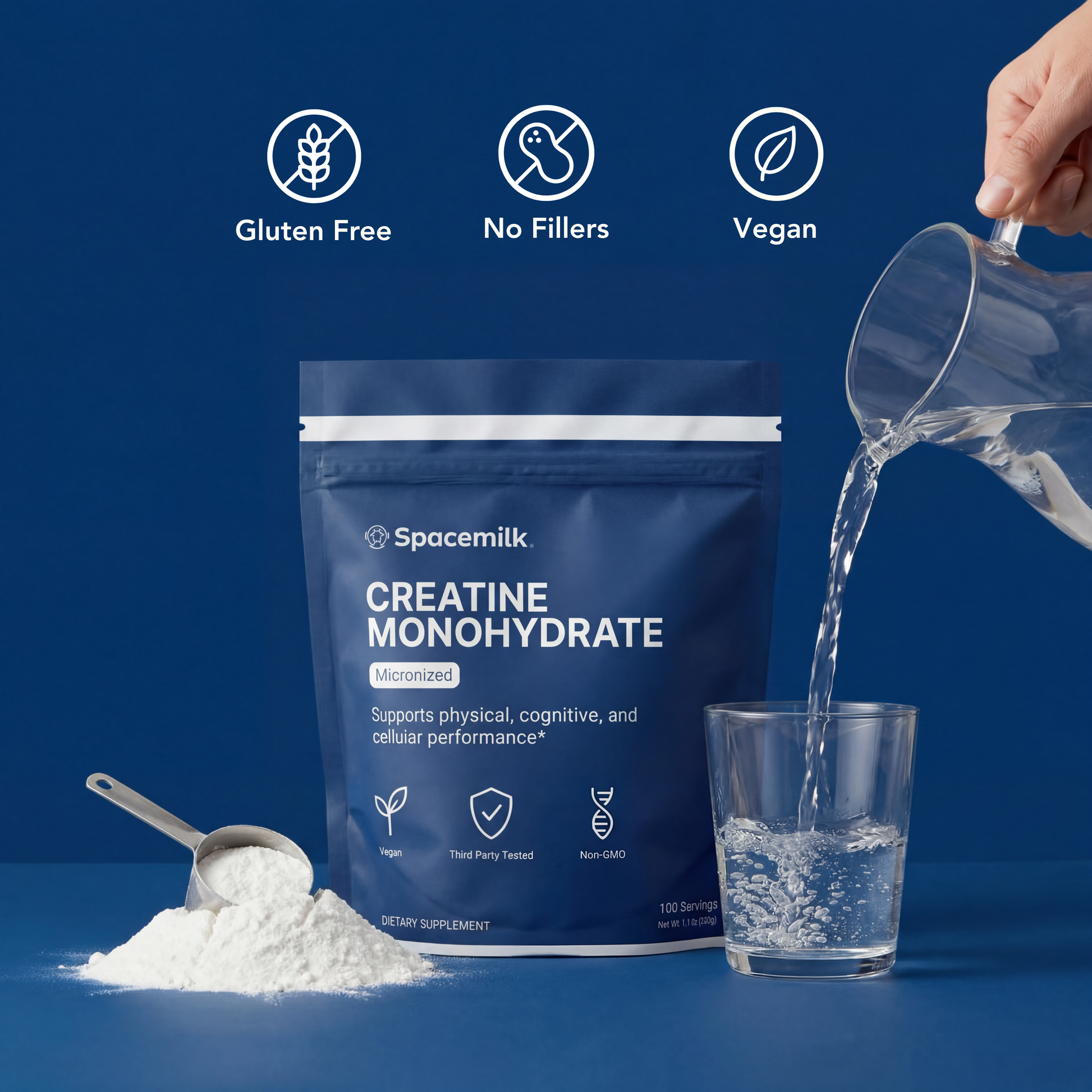 Our micronized Creatine Monohydrate Powder supports physical, cognitive, and cellular performance by acting as fast-access energy storage for your muscles and brain.* The result: stronger output during training, improved recovery between efforts, and clearer thinking when pressure is high or sleep is low.*