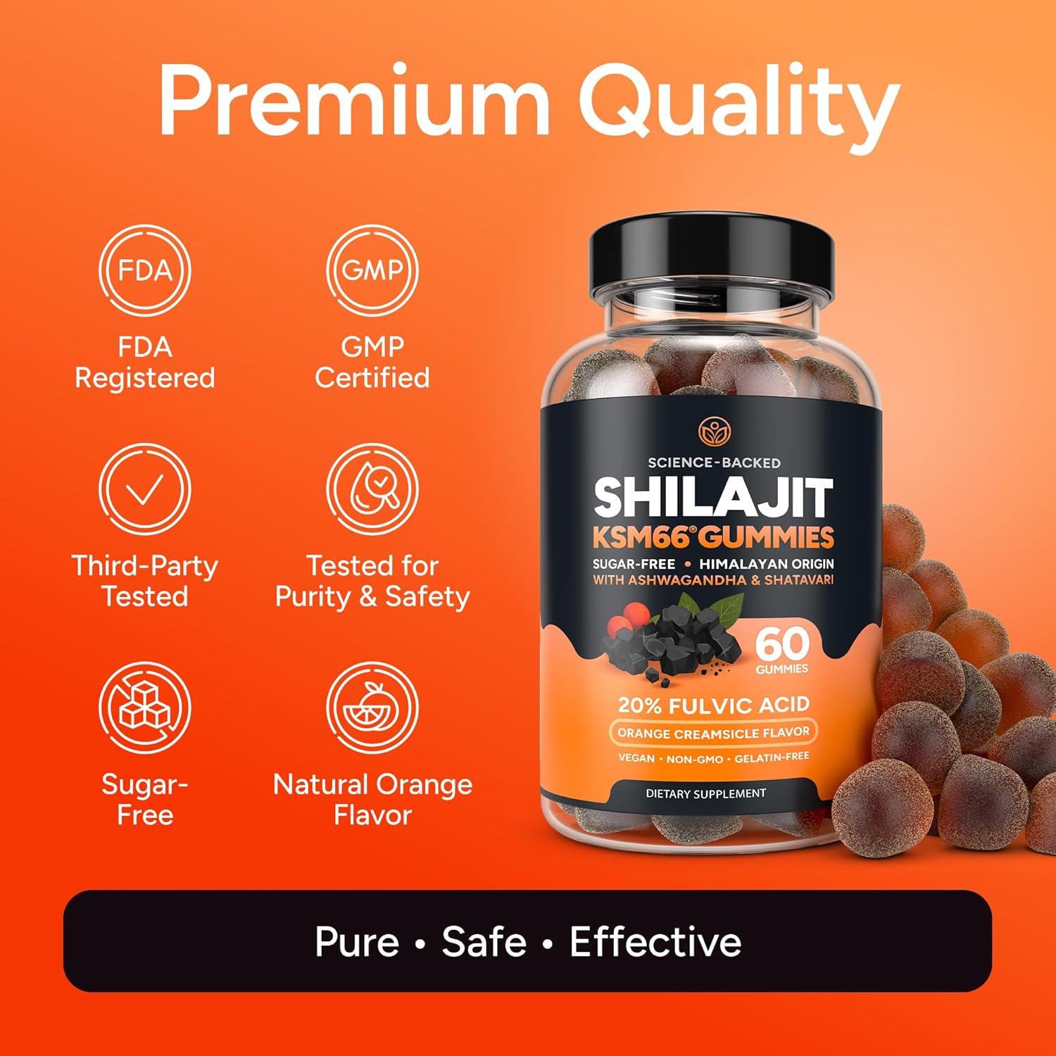 Premium Potent Ingredients - Sourced from the Himalayas, our pure Shilajit gummies extract is gold-grade and standardized for 20% fulvic acid. Enhanced with KSM-66 Ashwagandha and high-purity Shatavari for maximum effectiveness in each gummy.