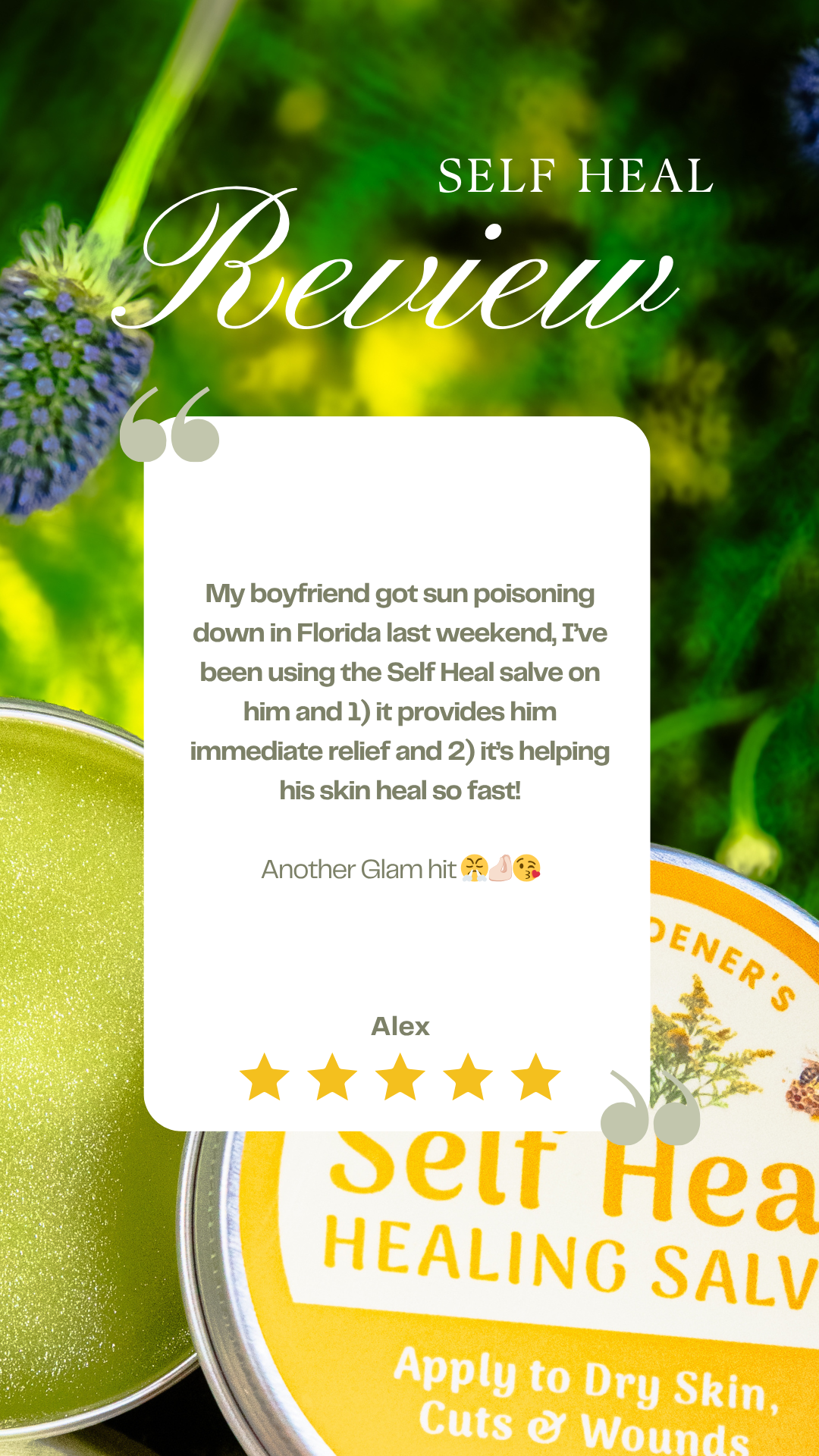Glam Gardener's Self Heal salve is one of our most beloved products. We designed this salve originally for gardeners, harvesters, and chefs. Because a long day of work in the fields or the kitchen will earn you a few minor cuts and wounds. After many years of crafting and selling this salve, customers tell us that they have found relief with Self Heal for a variety of ailments, including: